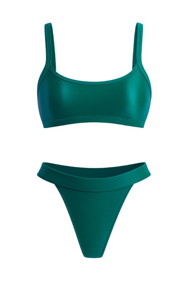 Set de lycra color brillante con corpiño tipo top de breteles regulables y gancho en espalda.